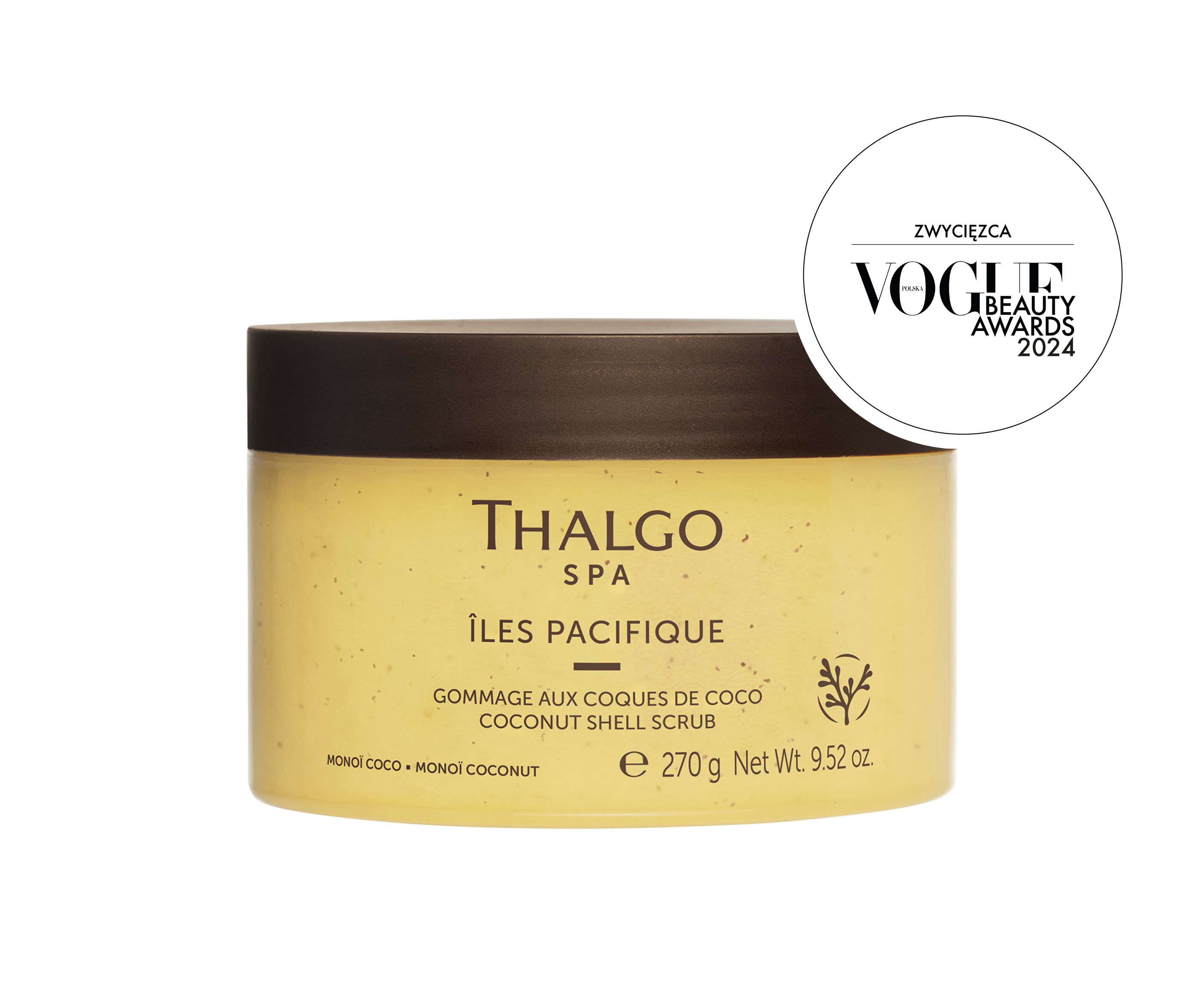 Egzotyczny dwufazowy peeling o rozpływającej się konsystencji i aromatycznym zapachu Monoi i kokosa. Składnikiem peelingującym produktu są łupiny orzecha kokosowego i sól morska, które złuszczają martwe komórki naskórka, eliminują zanieczyszczenia i stymulują odnowę komórkową. Dodatek makro alg Caulerpa Lentillifera, nazywanych też „morskimi winogronami”, rewitalizują i remineralizują skórę. Stymulują krążenie krwi, a także wspomagają odnowę komórkową. Zawartość oleju Monoi silnie odżywia, nawilża i uelastycznia skórę. Produkt można stosować również na suchą skórę w celu głębszego efektu złuszczenia. Produkt zawiera 96% składników pochodzenia naturalnego.